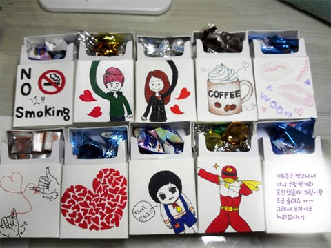 직접 담배갑을 만들어서 그 안에 초콜릿이나 사탕같은걸 넣어서 주신 분이 있더라구요 ㅋㅋㅋ