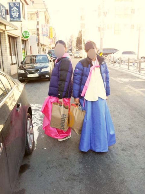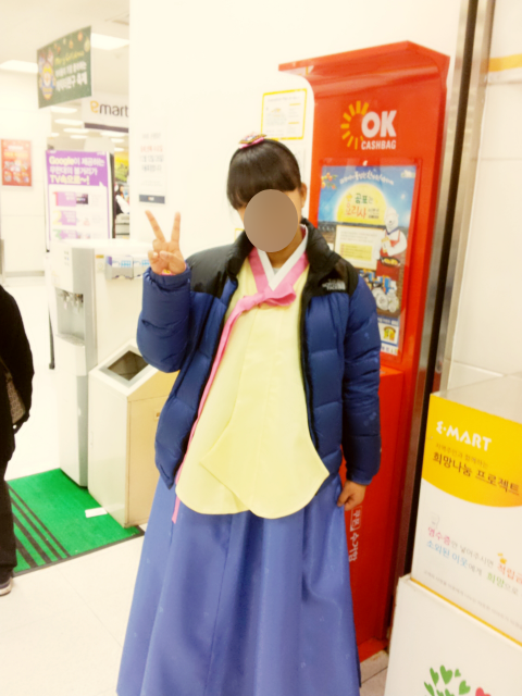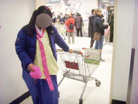 크리스마스때 직접 만든 한복입고 마트로 장보러 가기