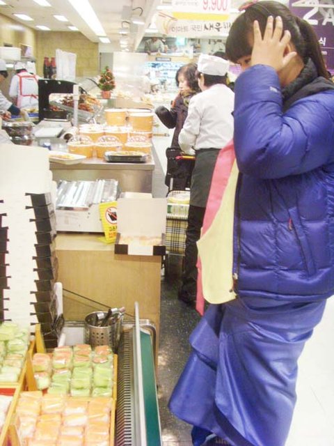 장을 보고있는데 우리가 직원 아주머니들 앞에 지나가니까