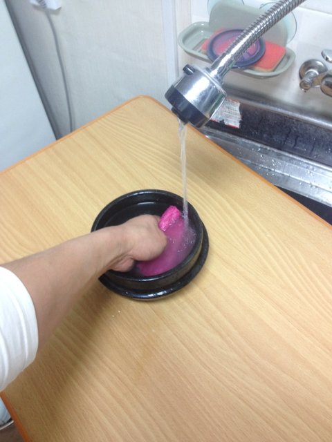 화장실로 들고가서 있는 "뜨거운물로 불리면 떨어질라나" 하는 생각과 함께 있는 힘껏 물을