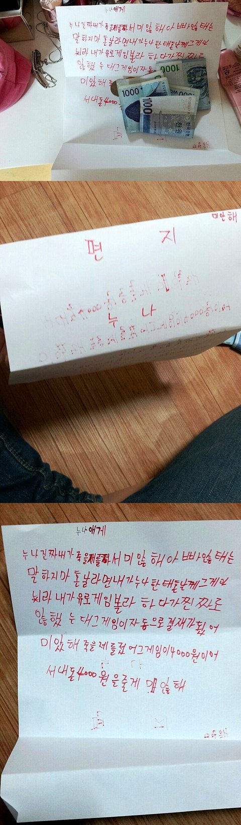 그때 동생이 전화를받았어여!! 너무화가나서 막 뭐라고한소리하고 빨리오라구해서 동생이 친구랑 달려오드라구여