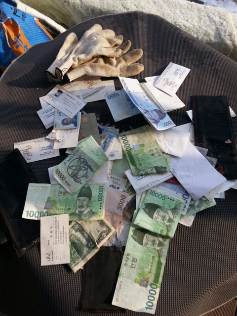 눈이 너무 많이와서 아빠가 마당에서 눈을 쓸다가 지갑을 잃어버리셨음.