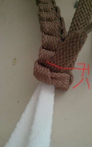 남은 흰색 중심끈의 매듭을 매주세요
