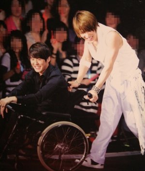 준수휠체어타고있는거보면서..안쓰러운데재중이가휠체어밀어주는거보면정말훈훈돋는다