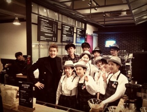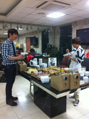 그 촬영장에 자신이 직접 운영하는 투썸 케잌과 커피를 싸가지고 갔다능~