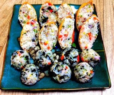 유부초밥과 유부가 모자라 대충 동그랗게 만든 주먹밥