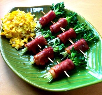 일반적으로 팽이버섯을 많이 넣긴 하나 아삭한 식감을 좋아하는 관계로 무순으로 대처한 베이컨말이와