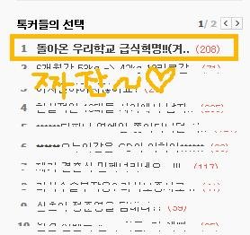 오옷 조금씩 순위 오르더니 학원다녀와서 치킨먹고오니  톡커들의 선택 1위!! ㅋㅋㅋ