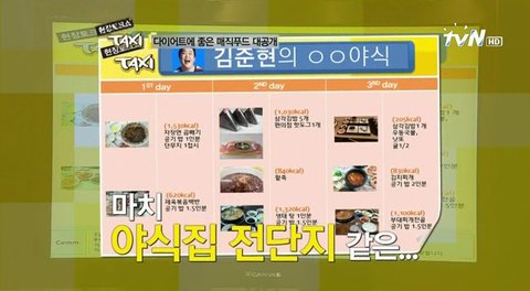 야식집 전단지 같은 김준현의 식단을 보신 원장님께서는 다음과 같은 처방전을 내려주셨다고 해요~