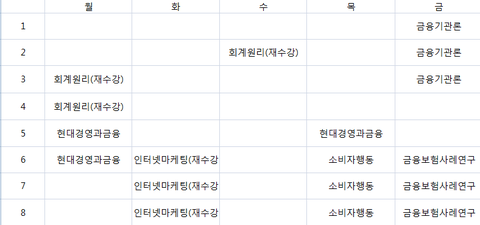 대학교 시간표 좀 상담해주세요 ㅜ
