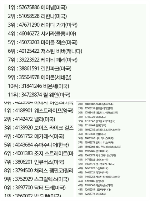 비욘세 클쓰 리한나 등등 가수들한테는 꼬리 내리면서