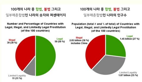 어떤 나라가 여러분 눈에 더 친근한가요?성매매 종사자, 사냥꾼, 나무꾼은 옛부터 있어왔습니다.성매매 여성을 위해서도공창제를 해야합니다.우리는 경제 문화 시민의식등 여러가지에서선진국을 닮을려고 노력합니다.선진국은 왜 성매매를 합법하 했을까요?성매매가 왜 나쁜가요?나쁘다고 칩시다.그러면 왜 저 수많은 국가들은 성매매를 합법으로 할까요?우리나라도 성매매 금지로 인해서 많은 문제가 있습니다.성매매 합법하면1.지하경제 활성화(규모가 큽니다.)2.성매매 여성 보호3. 성매매 원정 남성과 성매매를 파는 여자들이 해외로 나가지 않습니다.4. 국가경쟁력 상승(합법화로 인한 재원충당)5. 국가이미지 상승(이미지 상승은 경쟁력 상승으로~)