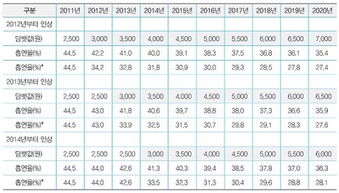 (표에 있는 내용은 담뱃값을 올렸을때 예상되는 흡연율이래요)