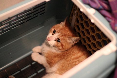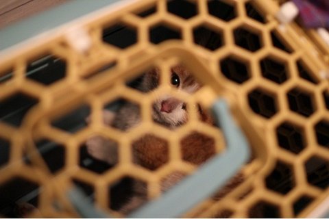 손으로 갑자기 잡으면 아이가 놀랄 것 같아서 이동가방 안에 사료를 놓아두니,