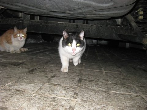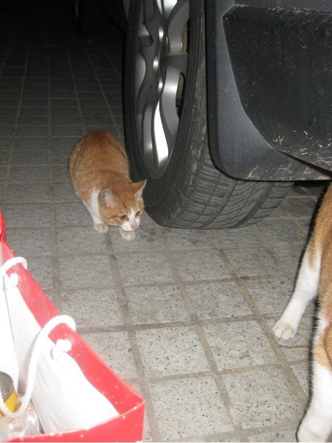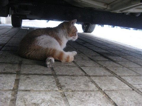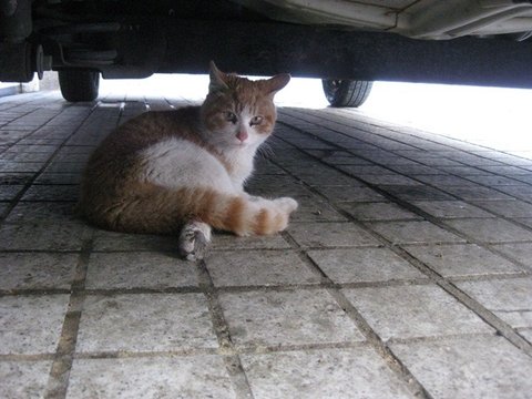 동네분과 잠시 이야기를 하는 동안 아이는 급식소 앞 차 밑에서 기다리고 있더군요.
