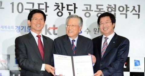 수원 KT를 택해준 KBO 구본능 총재 이하 여러 선배 구단주들의 결단에 감사드린다던 이석채 회장은 오늘이 있기까지 지원과 성원을 아끼지 않은 경기지사와 수원시장, 국회의원들을 비롯한경기도민들에게 진심 어린 감사를 전한다고 했었는데요.