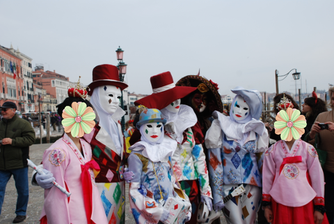 그래서 베니스에서 특별한 옷을 입고 돌아다니는 페스티벌이 있는데 여기서 언니와 저는 한복을