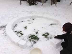 급 속력을 내던 이글루 짓기가 또 지붕에서 난관에 봉착함. 너무 크게지어 설계상 눈벽돌이 버티지 못할 것 같았음