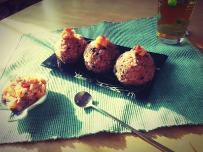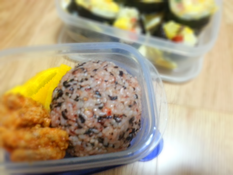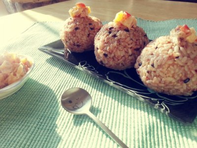 단감이랑 파프리카가 들어가 아삭하고 참치마요가 들어가 고소한 주먹밥^^