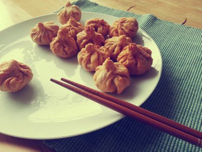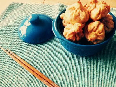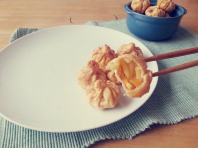 이건 사과랑 단감을 계피향나게 살짝 볶아서 만두피에 넣고 바삭하게 튀긴 단감만두! ^^
