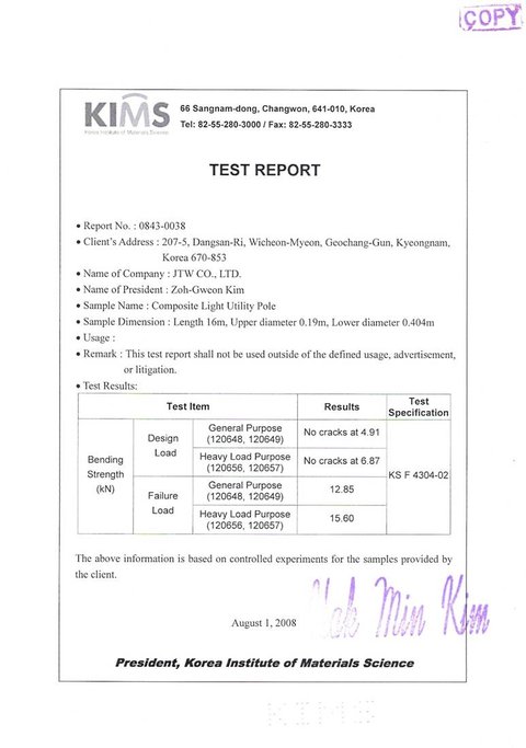 The best performance results has enabled Kepco to determine the regular use(in large quantities). But JTW has not known that injustice is preferred in Kepco. The result is this: Kepco purchased the Performance at lemon poles for high prices. JTW has known for the first time Kepco prefer the unlawful business to the lawful and Kepco is a pandemonium.