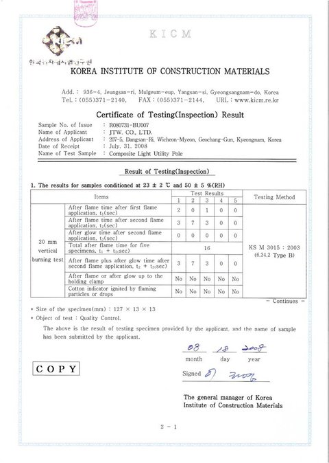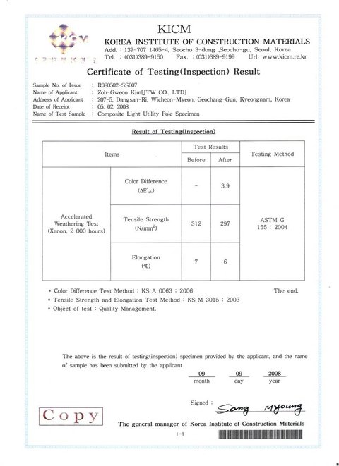 JTW has developed this technology(JCMT) for the past decade or so from 2001 to 2010 at the request of KEPCO(Korea  electric power corporation). Kepco has inspected JTW’s pole through pilot use.