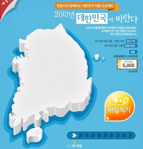 푸짐한 선물과 함께 여러분들의 바람이 한반도에 펼쳐진다고 합니다.