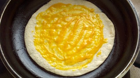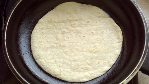 맨먼저 살짝기름을두른 후라이팬위에 또띠아한장을 깔아줍니다!!