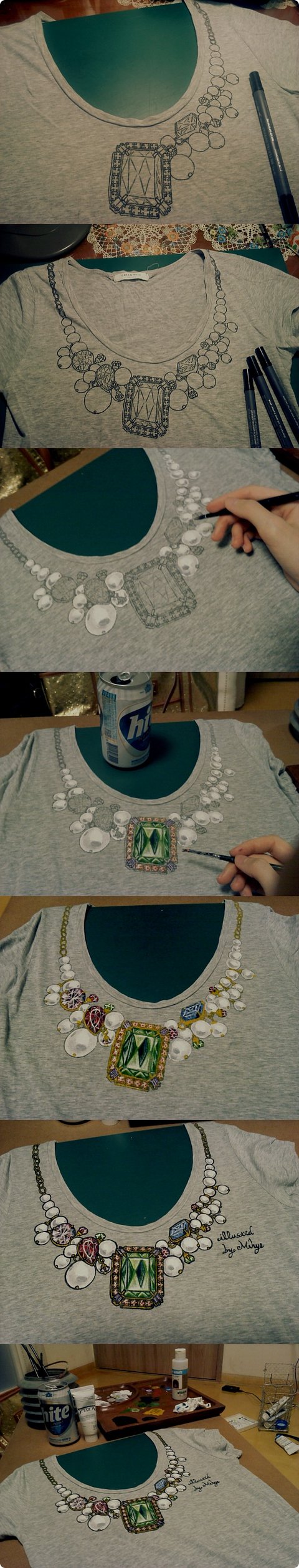 (이때에 티셔츠 안에 파일이나 고무판 같은 걸 넣고 그림을 그려야 뒷면에 번지지 않아요)