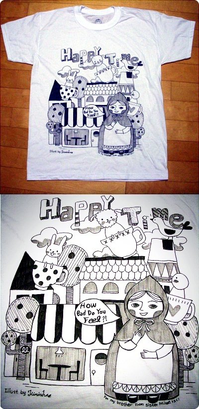 예전에 그린 티셔츤데 남자친구가 이거 보고나서부터 자기도 그림그려달라고 자꾸 졸랐다는ㅋㅋㅋ