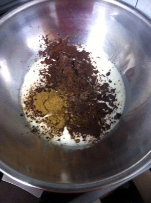 그래서 생크림을 좀 끓이다가 초콜릿을 넣고 불을 끕니다. 그럼 요래 부드럽게 되고 , 저같은경우