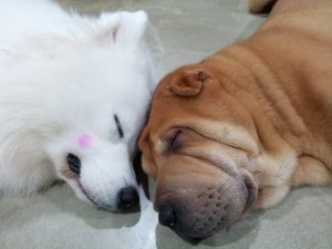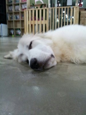손님 강아지들인데. 느무 이쁨. 자는것도 이쁨. 실컷 놓고 뻗으셨음.