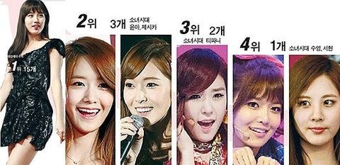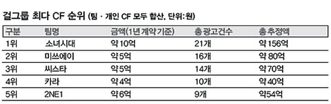 2012년에 걸그룹 멤버들은 과연 단독 CF를 얼마나 많이 찍었을까?