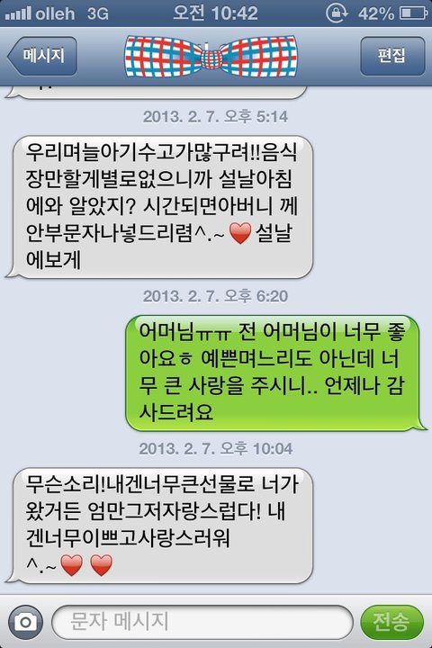 어제 저녁 어머님께서 보내주신 문자에 또 너무 행복해져 이렇게 자랑글을 쓰네요 ㅎㅎ