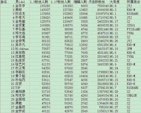 JYJ, exo, 빅뱅, 슈주, 2PM, 동방신기, 김현중 등이 보이네요.