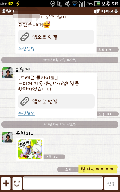 할머니가 요즘 스마트폰으로 바꾸면서 카톡게임에 열중하기 시작함 ㅋㅋㅋㅋ