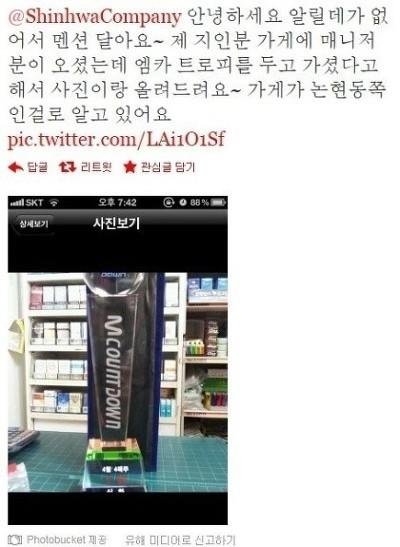 트로피는 편의점에 투척