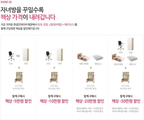 책상 보다가 보니까 의자, 옷장, 침대&매트리스 구입시 책상 할인 이벤트가 하고 있어서