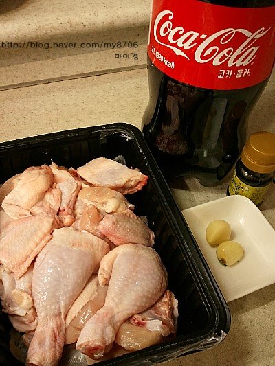 초간단 재료 : 닭한마리, 콜라 1.5L, 간장 오(아빠숟갈), 마늘 두쪽(더넣어도되요 취향껏)