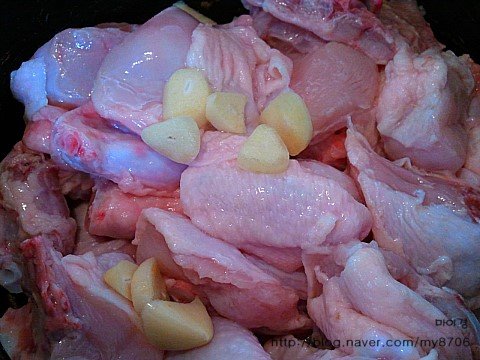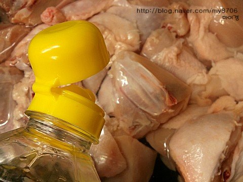 닭을 물로한번 씻어주고