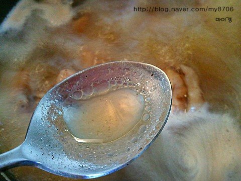사이드에 기름이뜸 놀라지 말고 저렇게 수저로 건져주기