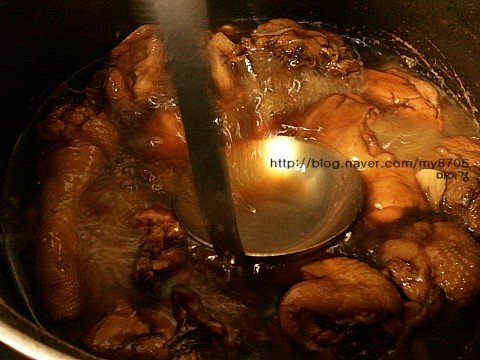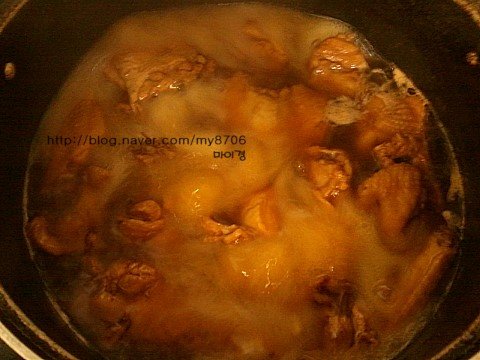 Tip. 이과정에서 끓는물에 닭을 살짝데쳤다가 쓰시면