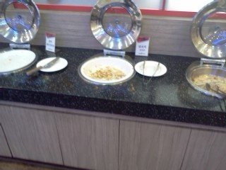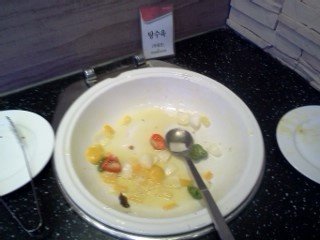근데 입구에서 카운터를 좀 지나니 옆에서 사람들이 먹고 남은 음식이 담겨져있는 접시를 어떤 큰 통에 막 넣고 있었음. 바닥에는 음식물 쓰레기랑 알 수 없는 물들이 나를 반기고 있었음. 정말 기분 좋게 먹으러 왔는데 그 마음이 조금씩 사라져갔음. 밥 먹기 전에 그것도 뷔페에서 저런 모습을 보인다는 거 자체가 좀 별로라고 생각했고 사람도 2층에 비해 거의 없는 편이여서 뭔가 이상했었지만 오늘은 졸업식이니까 그냥 좋게 좋게 가자라는 생각으로 무시하고 들어갔음.