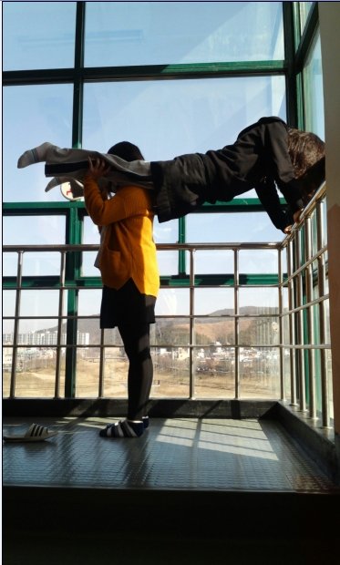 이거 찍는데 꽤나 힘들었어요..☆★ 계단 손잡이에 올라간 다음에 한발씩 꽉 손바닥으로 받쳐주고 하나 둘 셋 구호까지 붙여가면서 찍었다고ㅋㅋㅋㅋㅋㅋㅋㅋㅋㅋㅋㅋㅋㅋㅋㅋㅋㅋㅋㅋㅋㅋㅋㅋㅋ