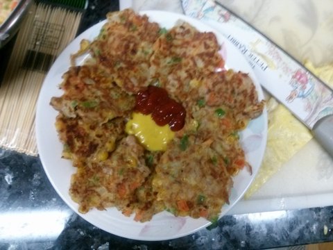 요렇게 야채 잘게 다지고 참치넣고 부침가루 계란 넣고 부치면