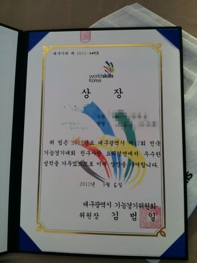 이때 상을 받고 엄마 아빠가 나의 요리 실력을 알아 주셨음 ㅎㅎ