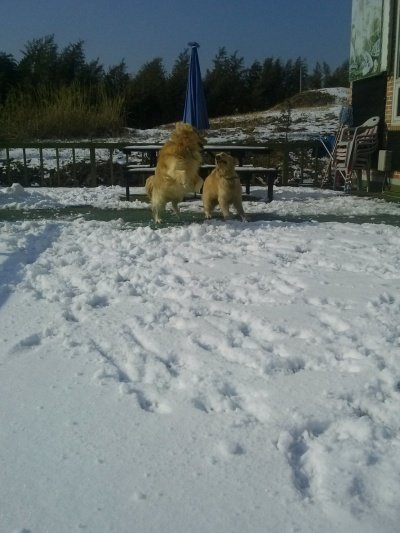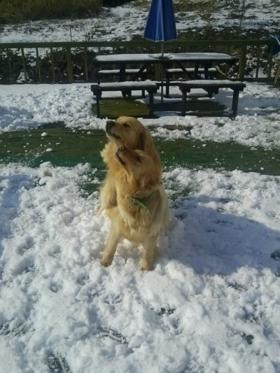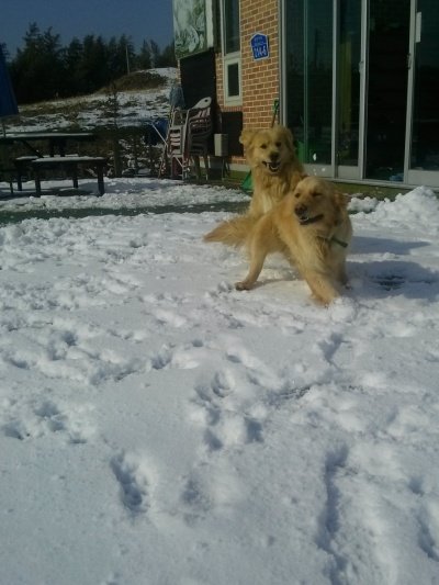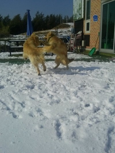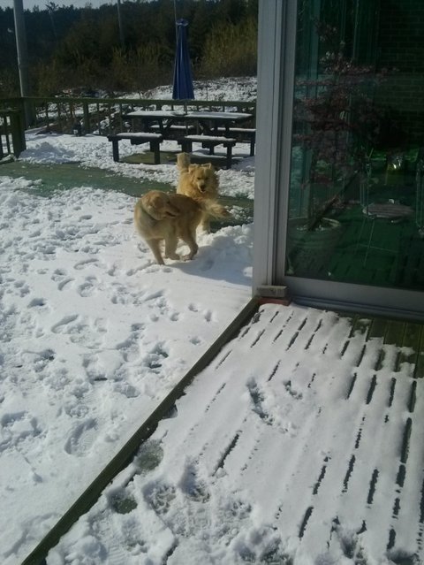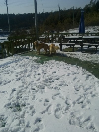 사이좋게 눈이나 먹개!