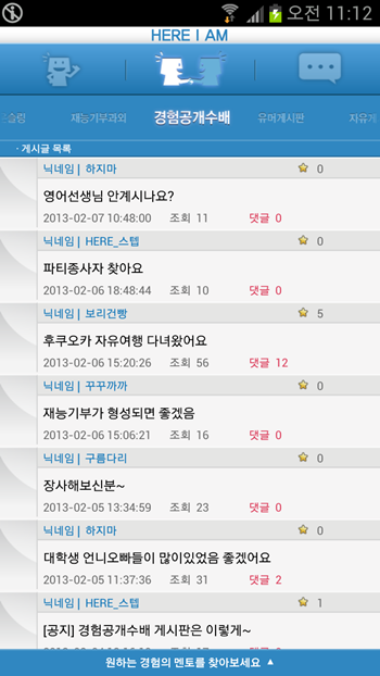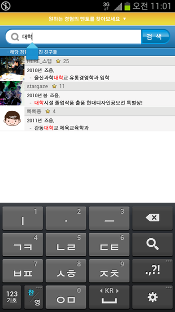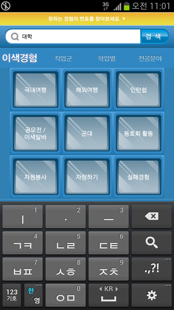 대학생들은 "원했던 경험"을 검색해서 직장인 등을 찾아 볼 수 있구요.