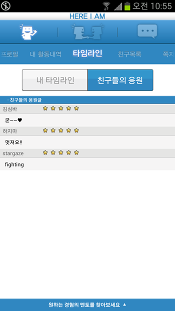 경험을 보고 이렇게 친구들한테 응원을 하거나 응원을 받을 수도 있구요
