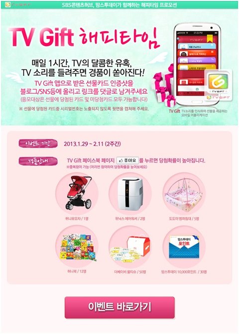 티비기프트에서는 단순히 카드를 통해 선물만 주는 게 아니라 다양한 이벤트도 진행하는데요.